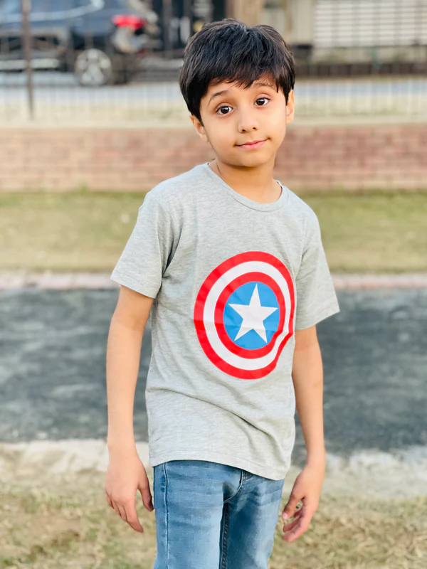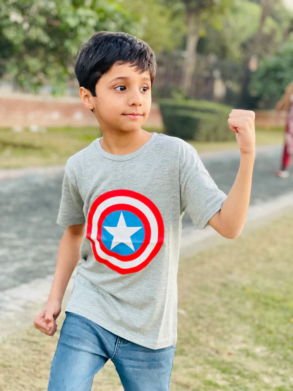 Be the first to review “Grey Captain America Slogan T-Shirt For Boys”