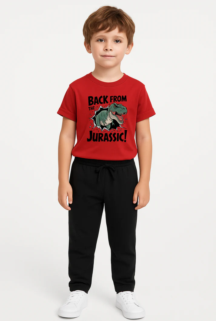 Buy fashionable and comfortable outfits designed for little trendsetters. The Jurassic World Tracksuit For Boys features a cute, printed top and matching bell-bottom trousers, perfect for informal wear, outings, or as a gift.